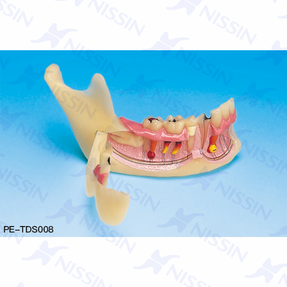 自然形態大小的半個下頜,打開鉸鏈式的頰板可以展示阻生牙,膿腫和齲齒等病癥及神經血管分布等解剖形態。