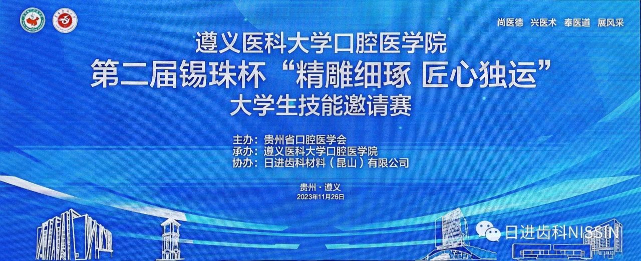 2023年11月26日,由貴州省口腔醫學會主辦,遵義醫科大學口腔醫學院承辦、日進齒科材料(昆山)有限公司協辦的第二屆錫珠杯“精雕細琢 匠心獨運”大學生技能邀請賽在遵義成功舉行。