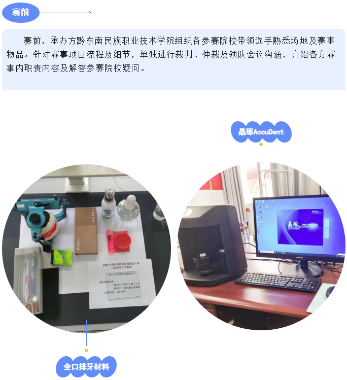 11月29日,由貴州省教育廳、貴州省人力資源與社會保障廳主辦,黔東南民族職業技術學院承辦的2023年貴州省職業院校高職組口腔修復工藝賽項順利舉辦,本次比賽共有貴州省內4所醫學院校組隊參賽。