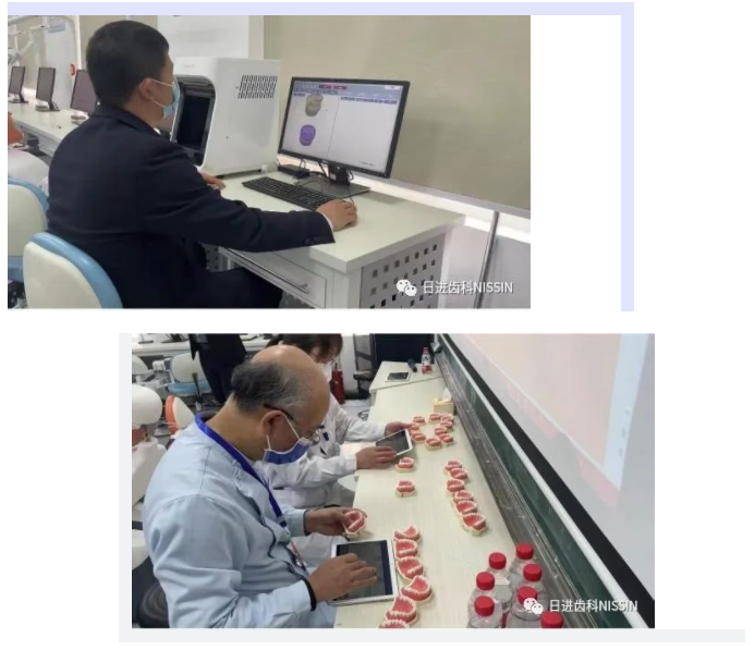 在第三考站口腔基本操作技能考核環(huán)節(jié),考核內(nèi)容為:左上頜第一恒磨牙近中鄰牙合面II類窩洞預(yù)備、右上頜中切牙烤瓷熔附金屬全冠牙體預(yù)備。日進(jìn)齒科材料(昆山)有限公司提供了口腔臨床模擬實(shí)習(xí)系統(tǒng)的技術(shù)保障以及模型等用品的全方位支持。其中,牙體預(yù)備和窩洞預(yù)備的作品通過口腔數(shù)字化結(jié)果評價系統(tǒng)的精確評估,結(jié)合評委的主觀評價,保證了比賽結(jié)果的客觀公平和公正。