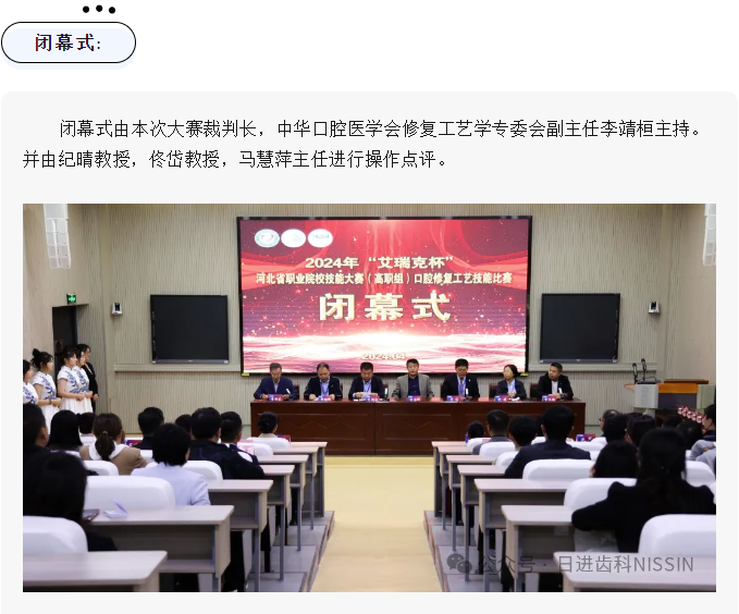 由河北省教育廳主辦,承德護理職業(yè)學院與河北省衛(wèi)生職業(yè)教育集團承辦,日進齒科材料(昆山)有限公司協(xié)辦的“2024年河北省職業(yè)院校技能大賽(高職組)口腔修復工藝技能比賽”于2024年4月28日在承德護理職業(yè)學院如期..