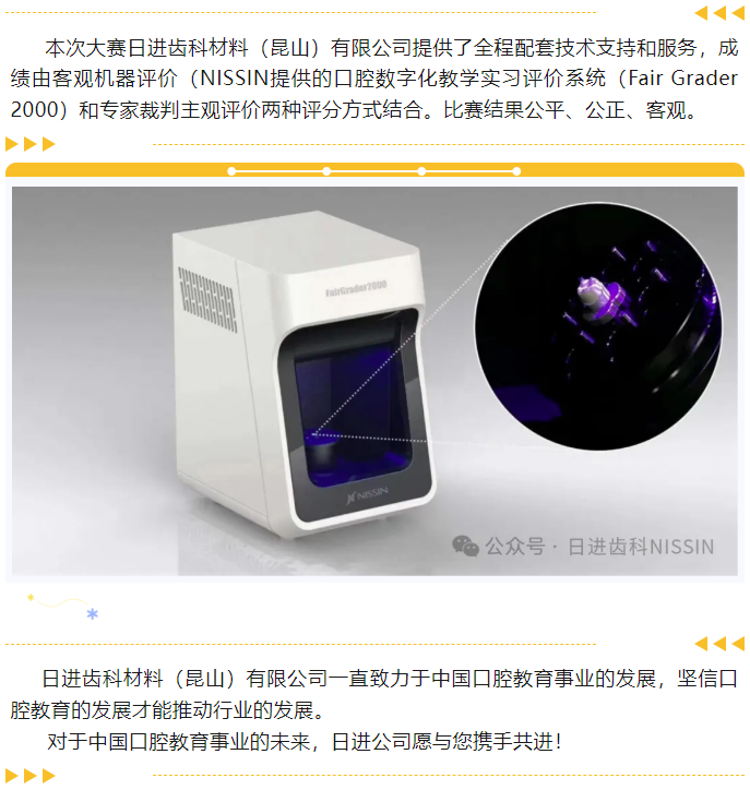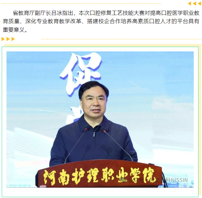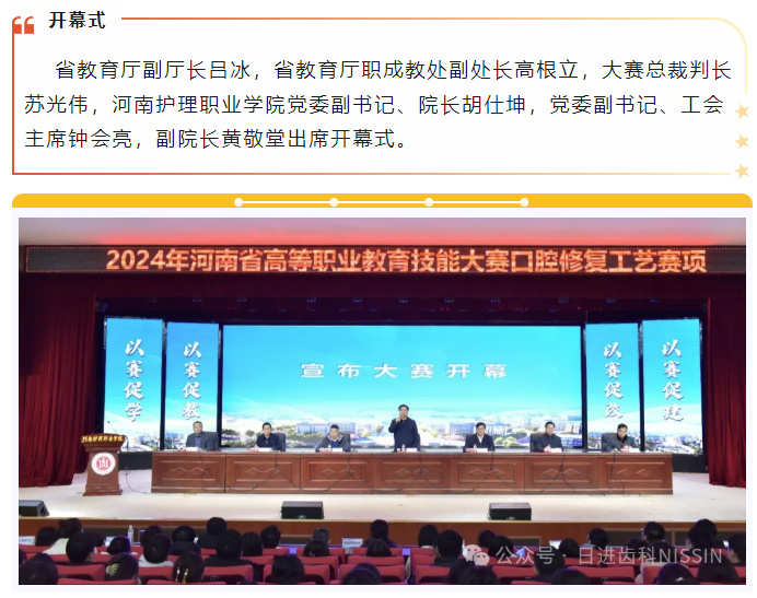 由河南省教育廳主辦,河南護理職業學院承辦的“2024年河南省高等職業教育技能大賽口腔修復工藝賽項”于2024年12月28日在河南安陽召開。日進齒科材料(昆山)有限公司為口腔修復工藝賽項提供全程的設備技術保障