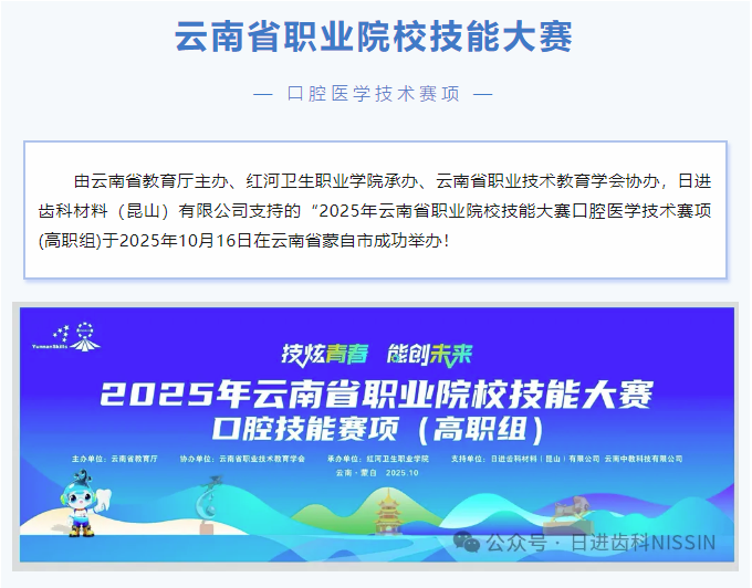 此次賽項(xiàng)的成功舉辦,不僅為參賽選手搭建了展示才華和成長提升的舞臺,也為各兄弟院校搭建了經(jīng)驗(yàn)交流、互學(xué)互鑒的橋梁,為云南高職醫(yī)學(xué)教育高質(zhì)量發(fā)展注入新動力。NISSIN為本次大賽提供深度支持,用專業(yè)與嚴(yán)謹(jǐn)為選手..